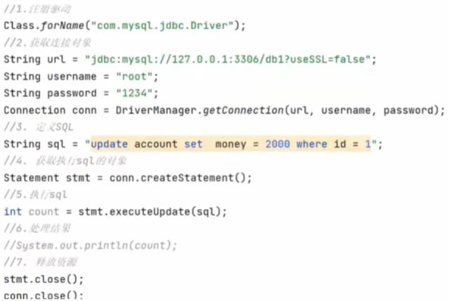 int count = (int) stmt.executeLargeUpdate(sql);//受影响的行数
