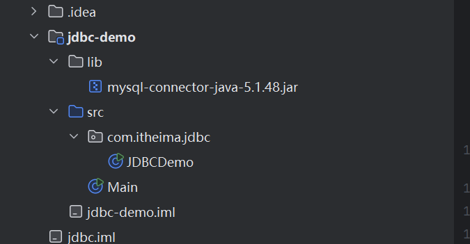 3.在src/com/itheima/jdbc中的JDBCDemo.java写下以下代码