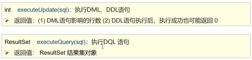 - 预编译SQL的执行SQL对象(防止SQL注入):PreparedStatement prepareStatement(sql)